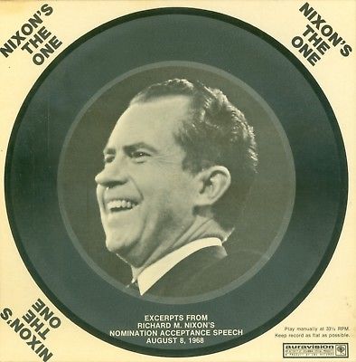 Title (ebay affiliate link): 2 Vintage 1968 President Nixon Political Campaign Vinyl 45 Records The One