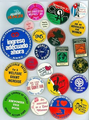 Title (ebay affiliate link): 11 Vintage 70s-80s Peace & Human Rights Pinback Buttons Internat''l Woman''s Day