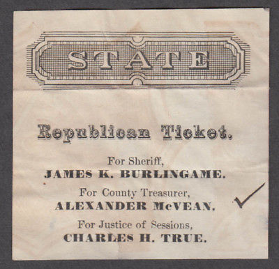 Title (ebay affiliate link): New York State official ballot Republican J K Burlingame A McVean True ca 1870s