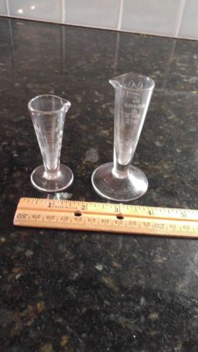 Title (ebay affiliate link): 2 rare tiny vintage etched apothecary measuring beakers