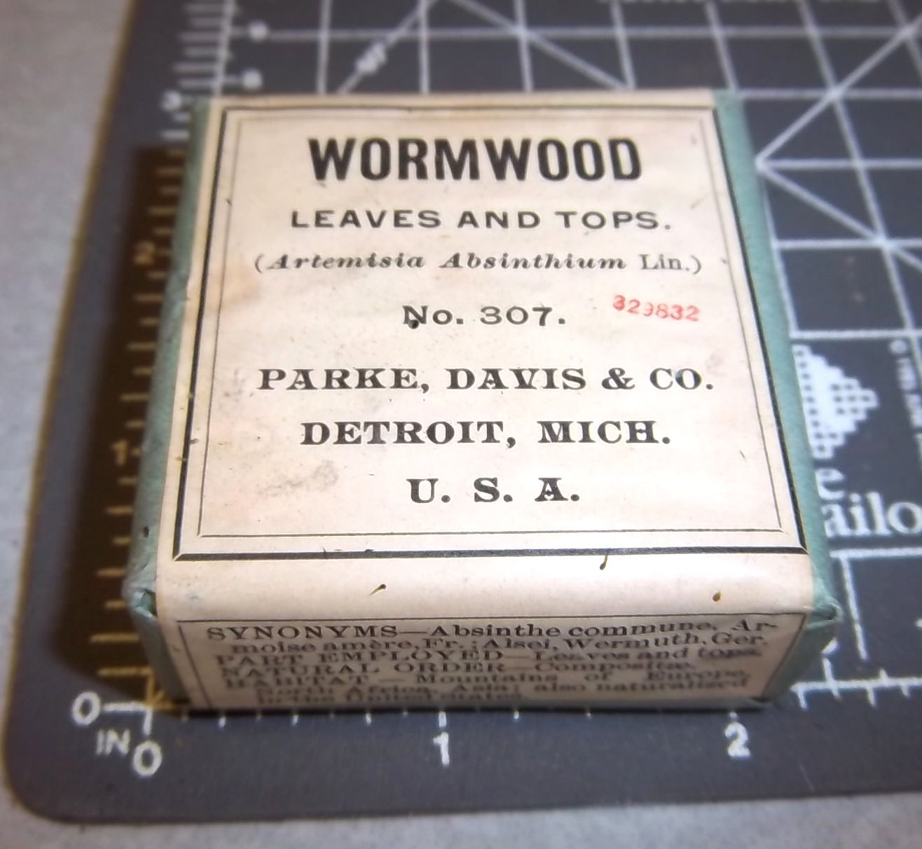 Title (ebay affiliate link): Vintage Parke, Davis & co WORMWOOD leaves, 1900s Pharmacy New unopened box NOS