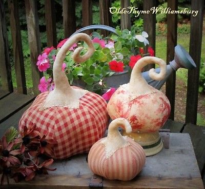 Title (ebay affiliate link): Set of 3 Large Primitive Early Style CRANBERRY Homespun Grubby Fall PUMPKINS