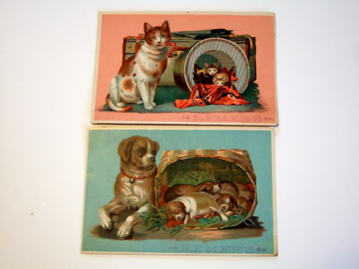 Victorian Remer Tea Cat Dog Family In Basket Trade Card