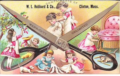 Title (ebay affiliate link): Trade Card Clinton MA W L Hubbard & Co Scissors