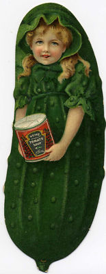 CUTE HEINZ PICKLE GIRL HOLDING CAN OF TOMATO SOUP