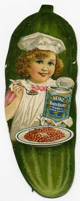 CUTE HEINZ PICKLE GIRL EATING BOWL OF BAKED BEANS