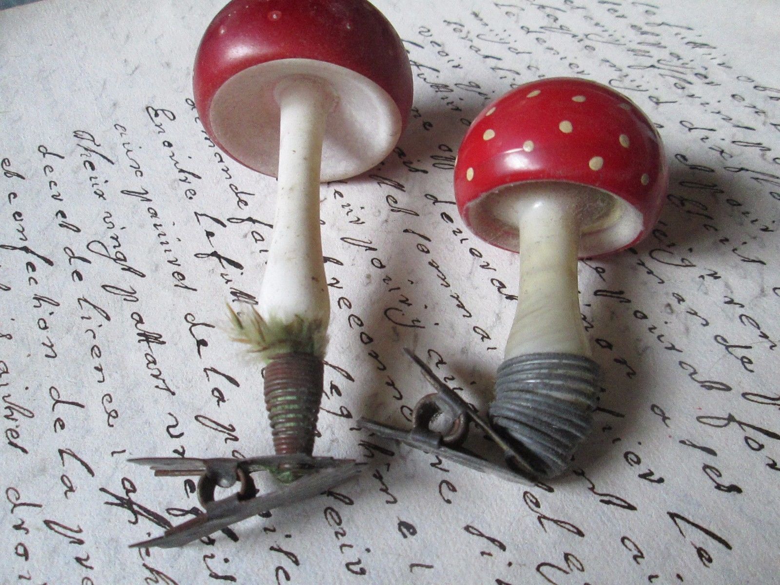 2 old Vintage Christmas glass muchrooms with clip-Germany