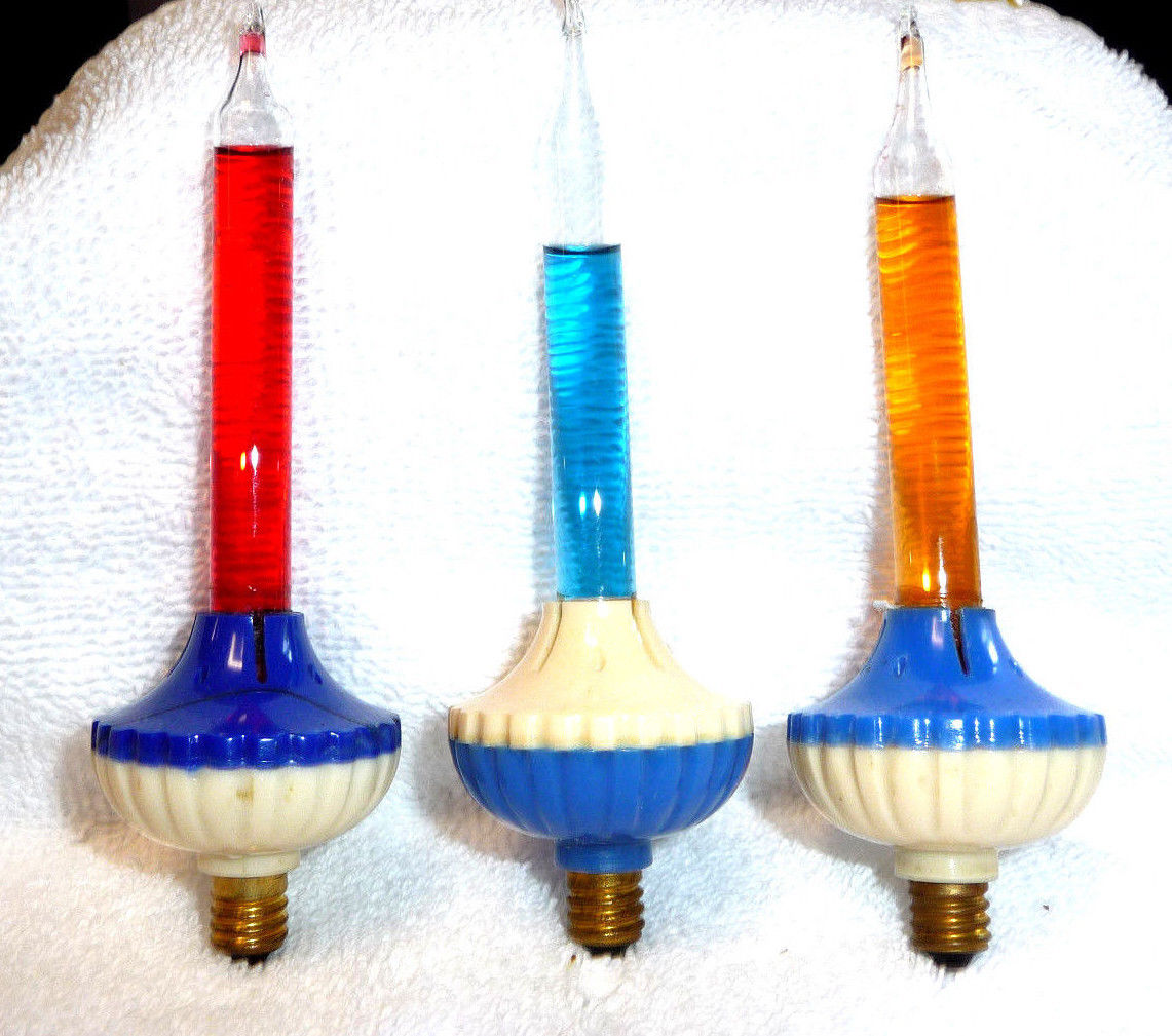 Title (ebay affiliate link): VINTAGE BUBBLE LIGHTS C6 ROYALS OR ROYALITES ALL WORKING RARE DARK BLUE BASE