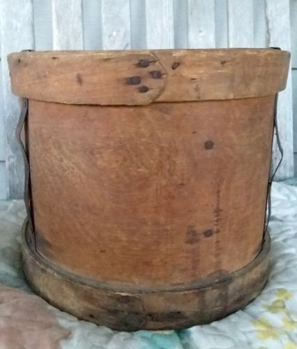 Title (ebay affiliate link): *Primitive Bentwood Firkin* Antique Bucket Vintage Quincy Ill. Advertising
