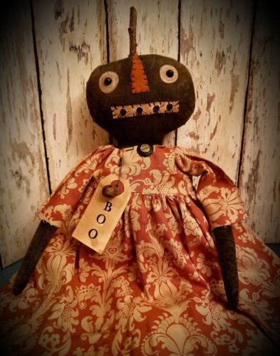 Title (ebay affiliate link): Primitive Halloween Black Pumpkin Doll ~Fall~