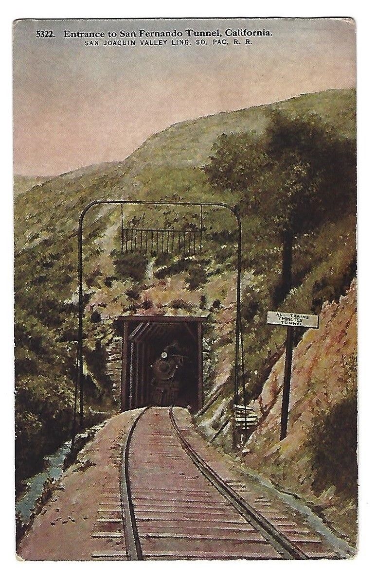 Title (ebay affiliate link): Entrance to San Fernando Tunnel San Joaquin Valley Line So.Pac.R.R. old postcard