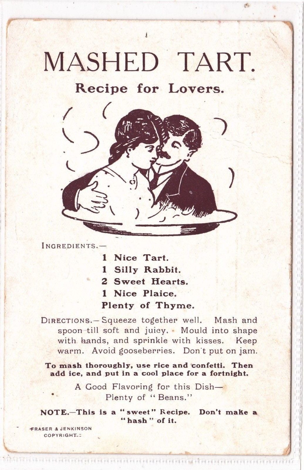 Title (ebay affiliate link): VINTAGE POSTCARD " MASHED TART " COMIC POSTCARD 1900s
