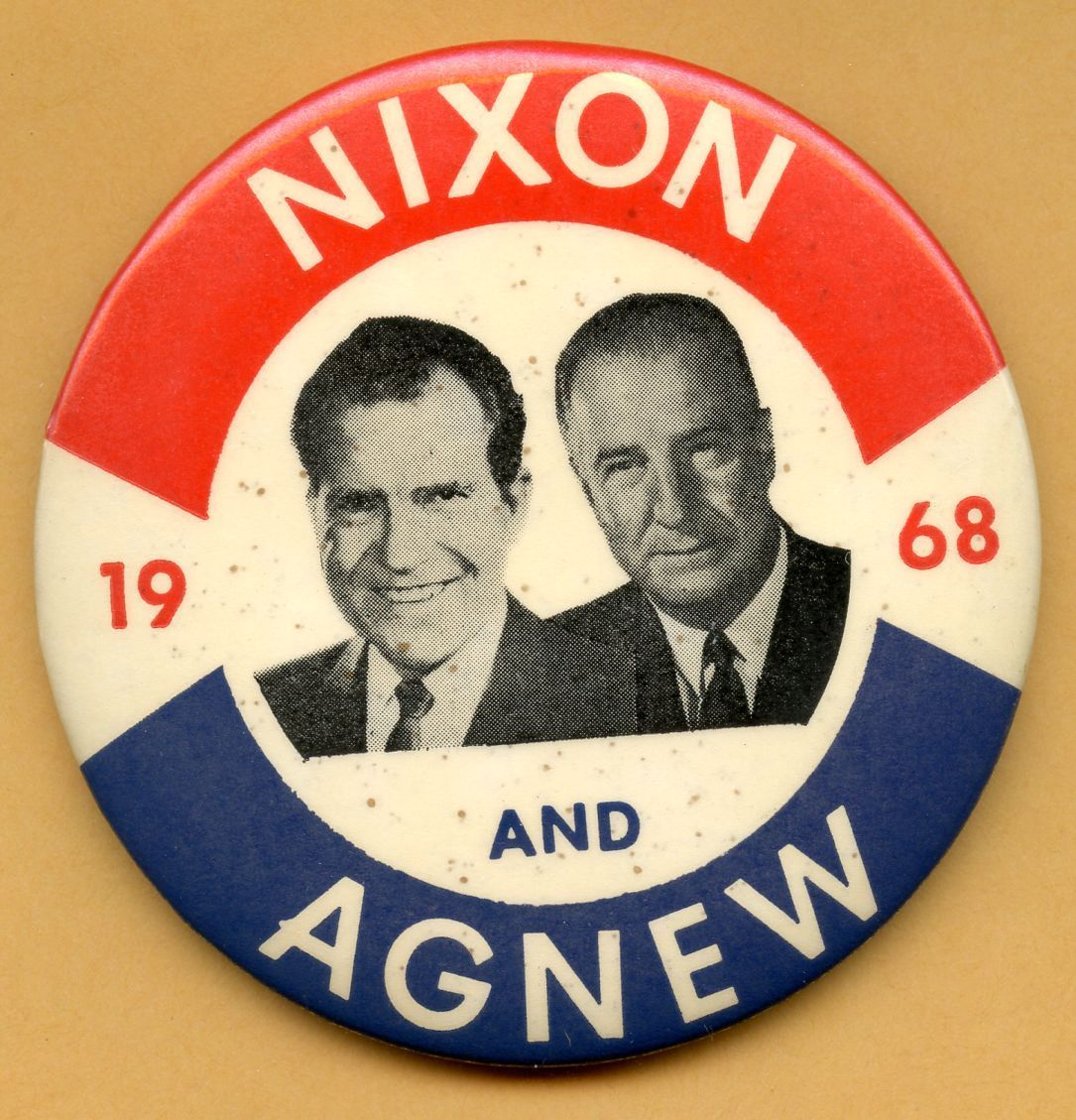 Title (ebay affiliate link): Nixon-Agnew 3 1/2" Political Campaign Pin-back Button 1968 VG condition