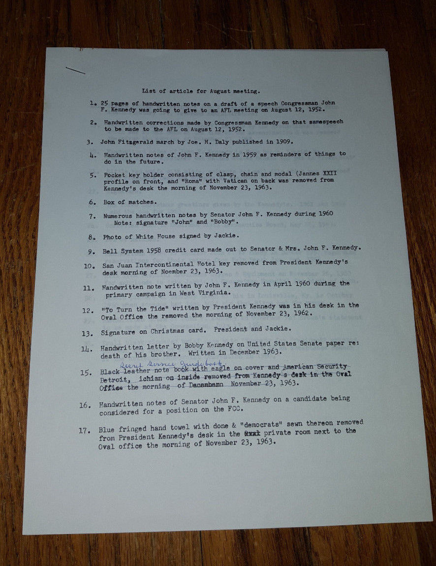 Title (ebay affiliate link): Original JFK''s Sec. Evelyn Lincoln''s Typed and Handwritten List
