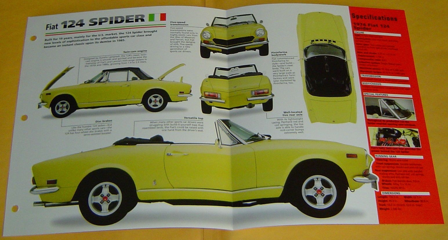 1974 Fiat 124 Spider Convertible 1756cc 4 Cylinder IMP Info/Specs/photo 15x9