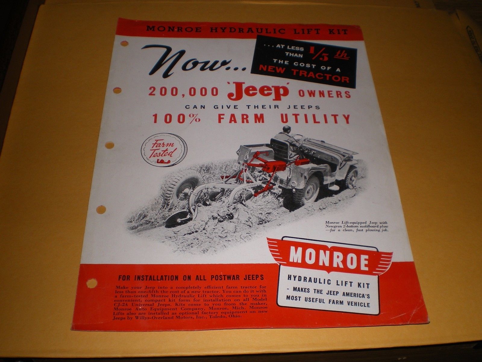 Title (ebay affiliate link): Monroe Hydraulic Lift Kit For Willys Overland Jeep 1948 Accessory Brochure