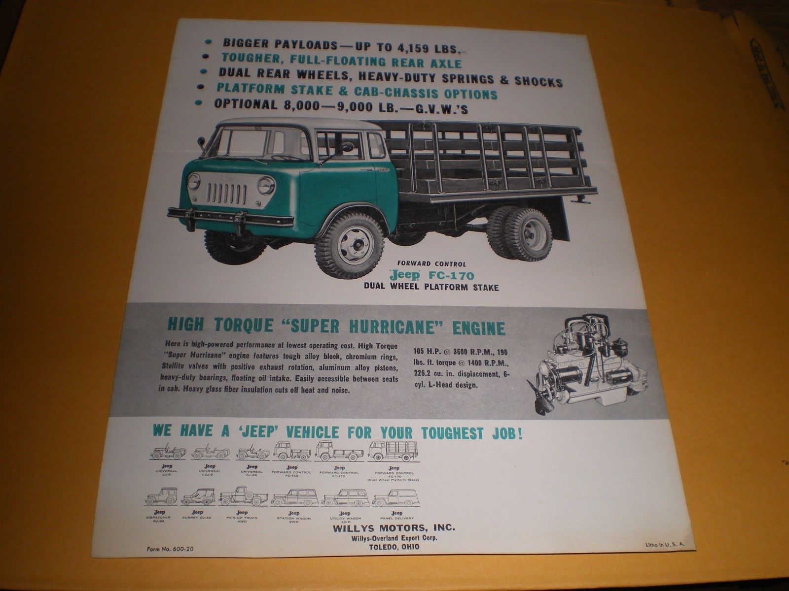 Willys Motors Toledo Ohio Jeep FC-170 Dual Wheel Platform Advertising Mailer