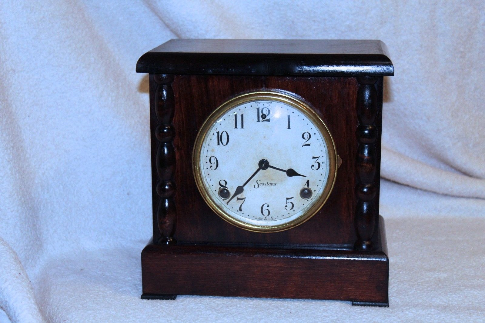 Title (ebay affiliate link): SESSIONS ANTIQUE MANTLE CLOCK 100% ALL ORIGINAL BEAUTIFUL & RUNS GREAT!
