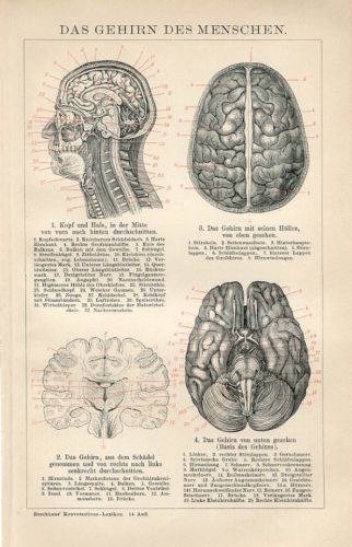 1895 HUMAN BRAIN ANATOMY Antique Engraving Print