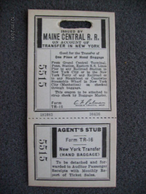 MAINE CENTRAL RAILROAD TRANSFER TICKET