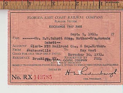 Title (ebay affiliate link): FLORIDA EAST COAST RAILWAY CO 1921 RAILROAD EMPLOYEE PASS 3- 4o 199