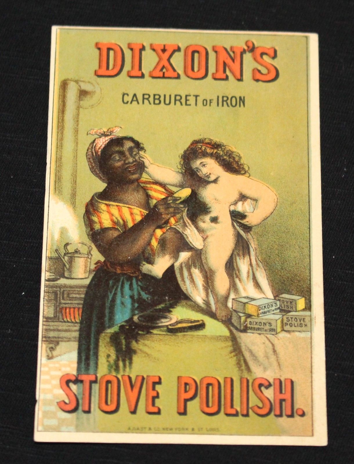 Title (ebay affiliate link): Black Mammy washing Stove Coal off Child. Dixon''s Stove Polish Adv. Trade Card