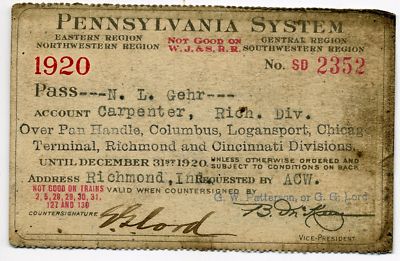 1920 Pennsylvania Railroad System Pass N.L. Gehr