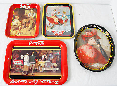 Title (ebay affiliate link): 4 Pieces 1987 Coca Cola Metal Trays 1924 Touring Car 1936 Sea Captain And More