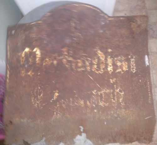 Folk Art Antique metal Church Sign- Methodist. Rusty and old Jagged