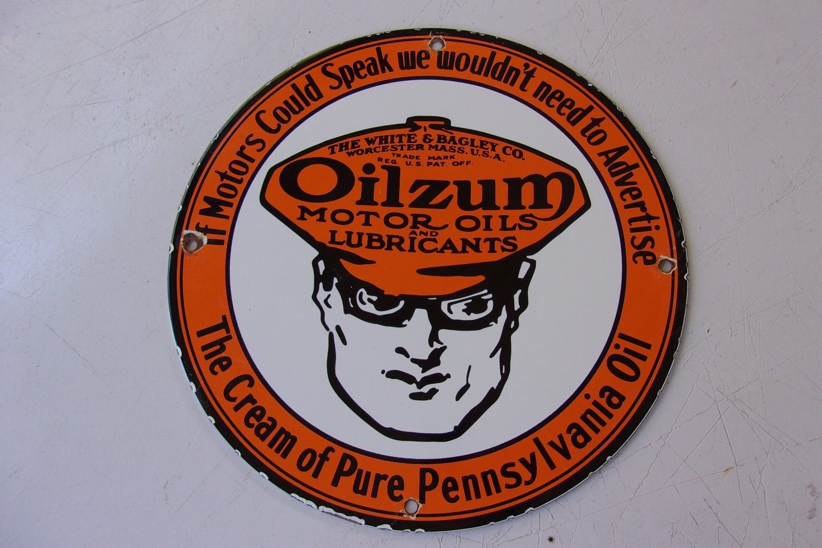 Title (ebay affiliate link): VINTAGE OILZUM MOTOR OIL PORCELAIN SIGN GAS STATION PUMP PLATE LUBESTER PLATE