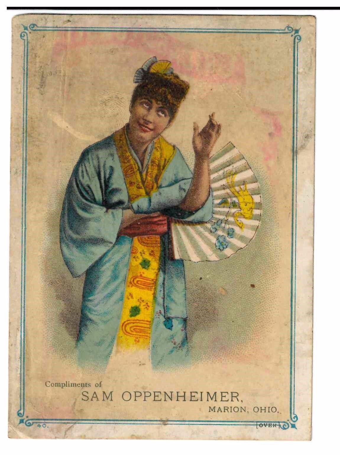 vintage advertising card sam oppenheimer Marion Ohio asian