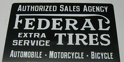 Vintage,Federal,Tires,Auto,Bicycle,Motorcycle,Cudahy,Wisconsin,Alum Sign,18"x12"