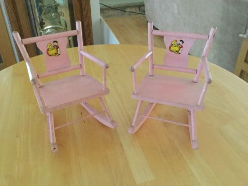 Title (ebay affiliate link): 2 Vintage Wood Doll Rocking Chair w Stencil 10" H x 7" W x 9" D
