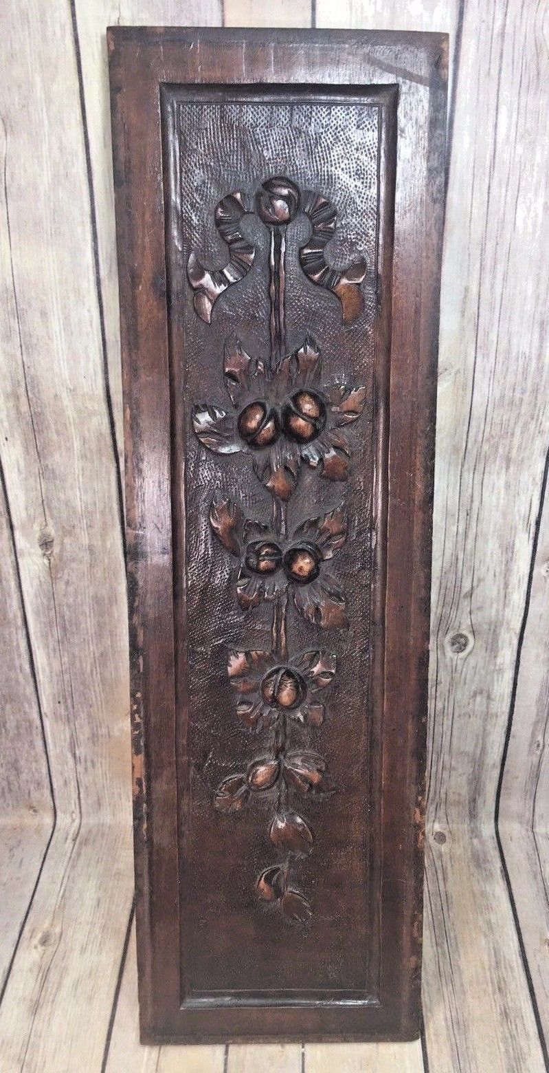 Antique Hand Carved Dark Wood Panel Salvage Bow Acorns Leaves 23.5 x 7 inches