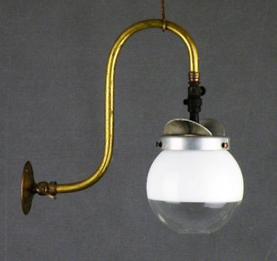 Victorian Edwardian Brass Gas Wall Bracket Lamp Inverted Mantle Light Shade