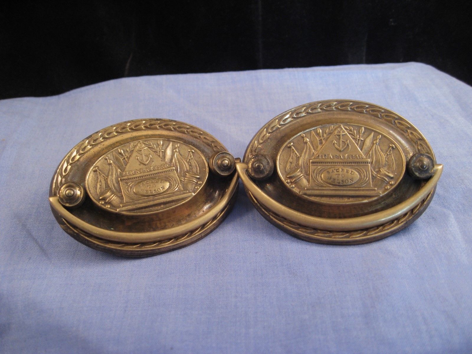 LOVELY ANTIQUE NELSON BATTLE TRAFALGAR BRASS DRAWER CUPBOARD DOOR DESK HANDLES