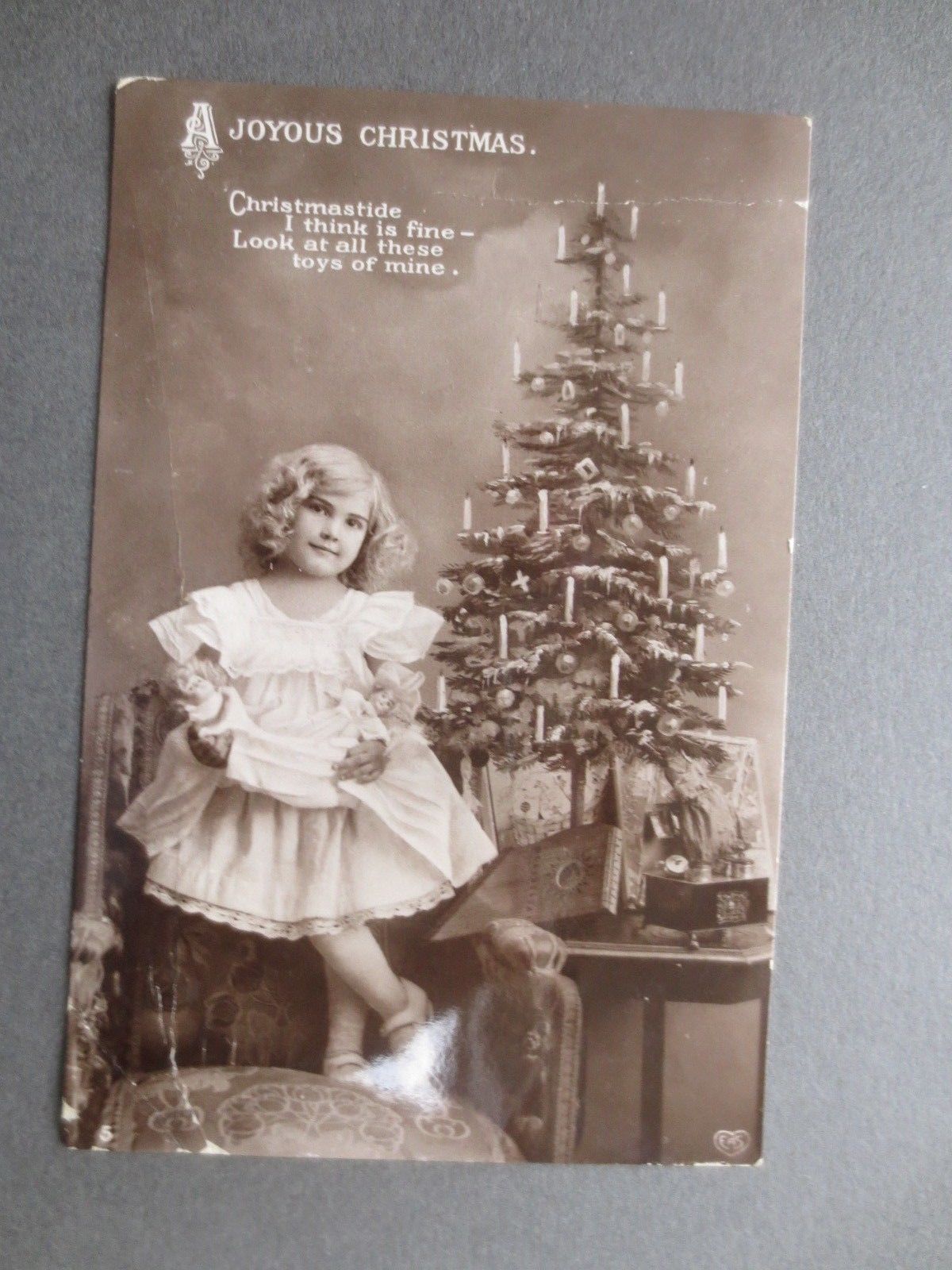 Antique Postcard Christmas Greeting E A Schwerdtfeger Little Girl Dolls Tree