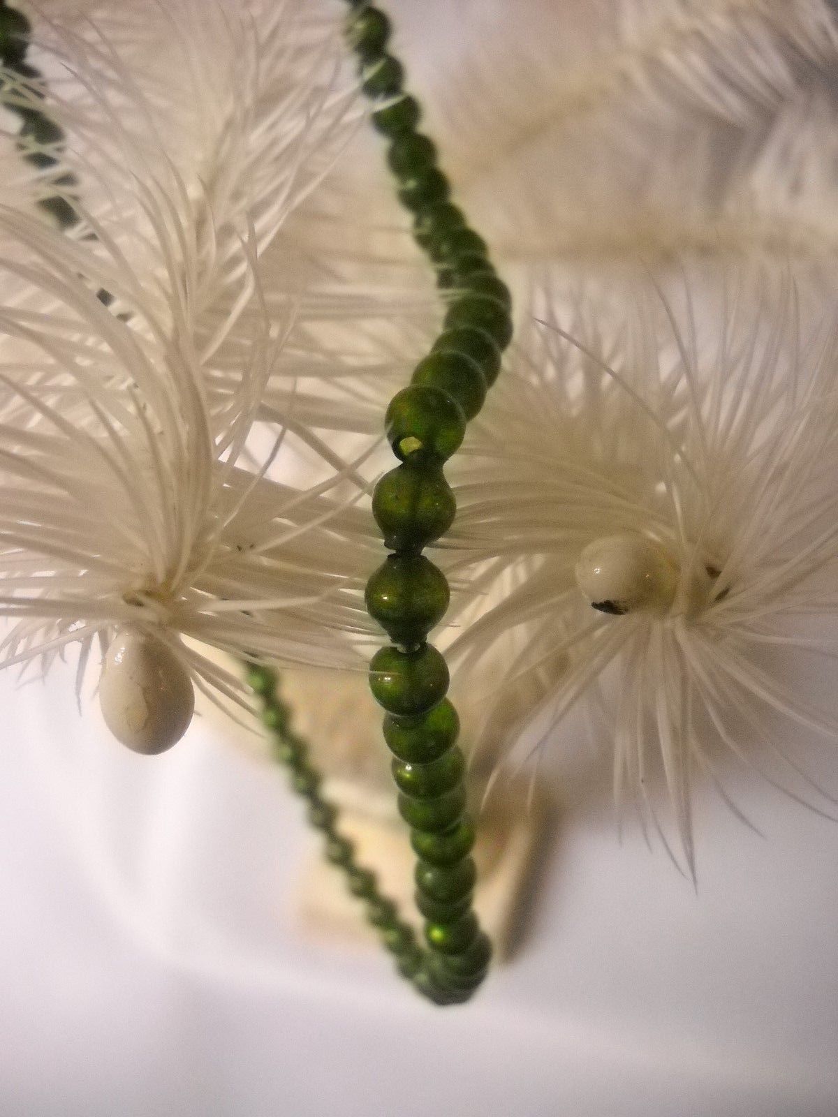 Title (ebay affiliate link): Antique Feather Tree Tiny Green Mercury Glass Beads Garland