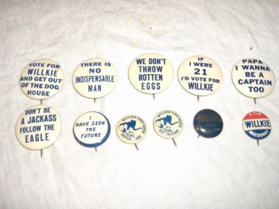 Title (ebay affiliate link): 11 1940'S WENDEELL WILLKIE POLITICAL PIN BACK BUTTONS