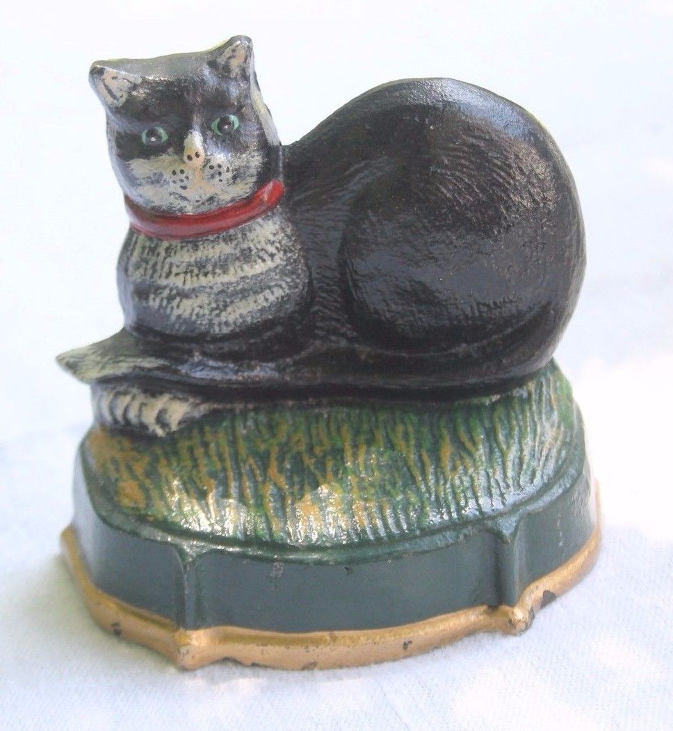 ANTIQUE CAST IRON CAT ART STATUE SCULPTURE KITTEN DOORSTOP UNBRANDED