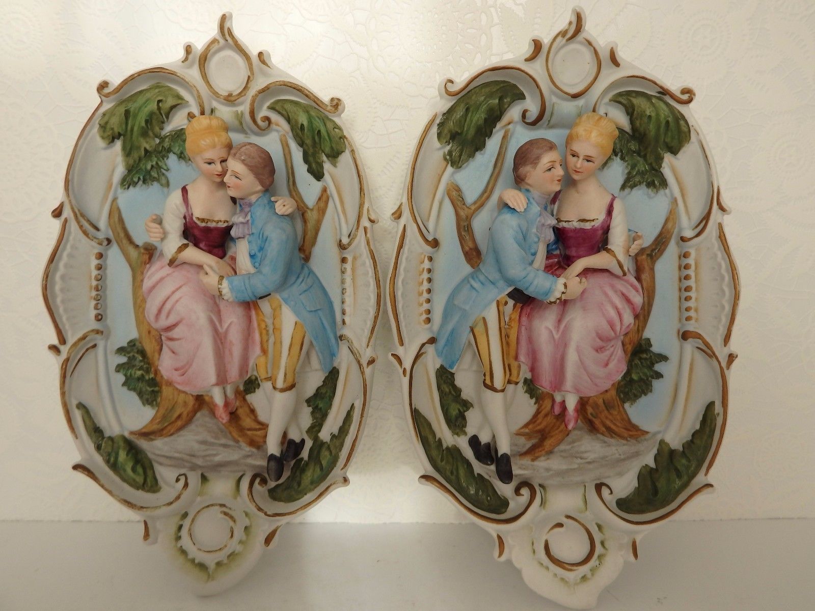 2 Lovely Vintage Victorian Porcelain Wall Hangers Figurines.