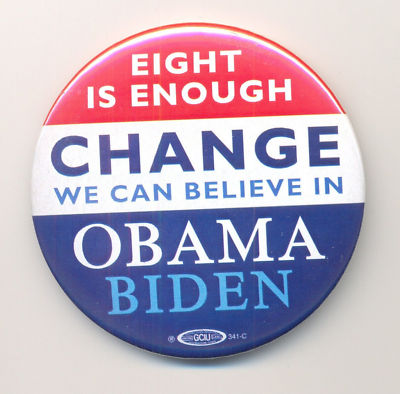 Eight is Enough Obama Biden Official Pinback Button Pin
