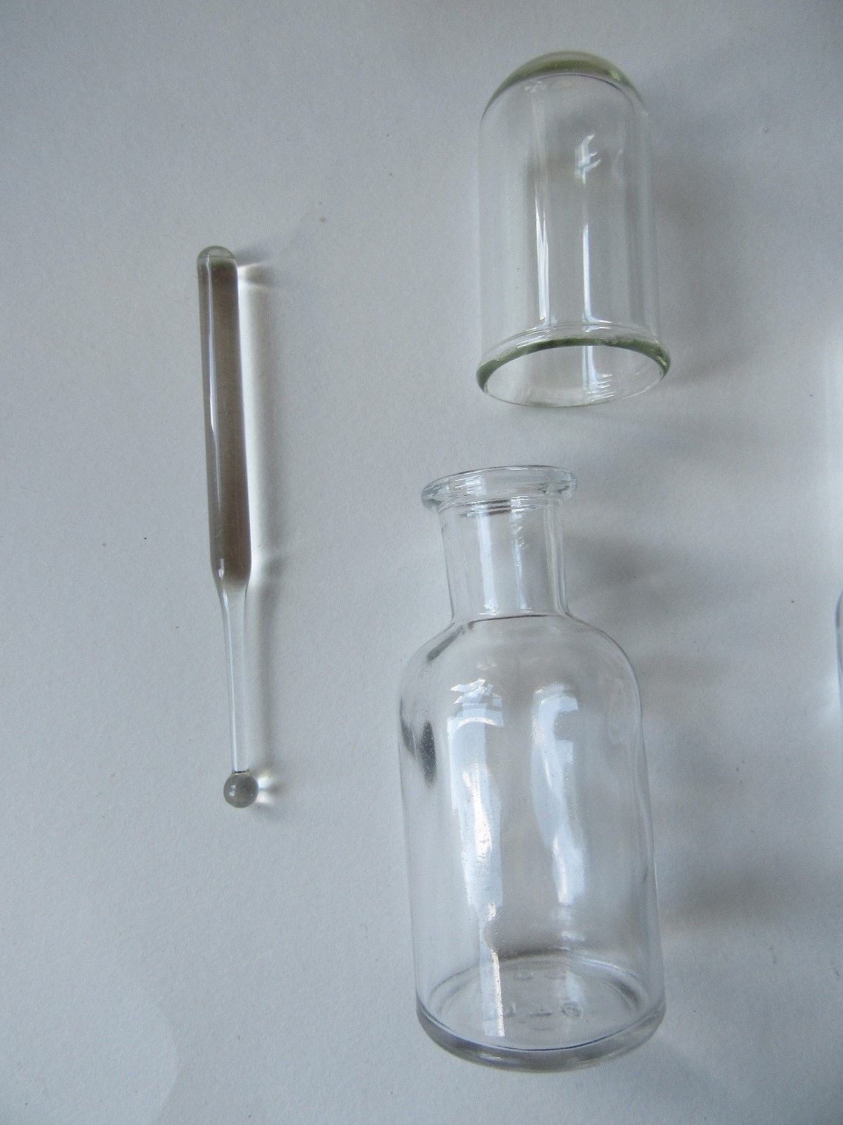 antique medical glass Canada Balsam bottles, set of 10, with glass rods,