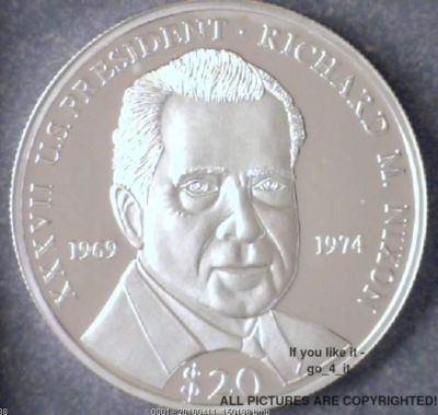 Title (ebay affiliate link): Liberia 2000 $20 Silver Proof Coin - Richard Nixon