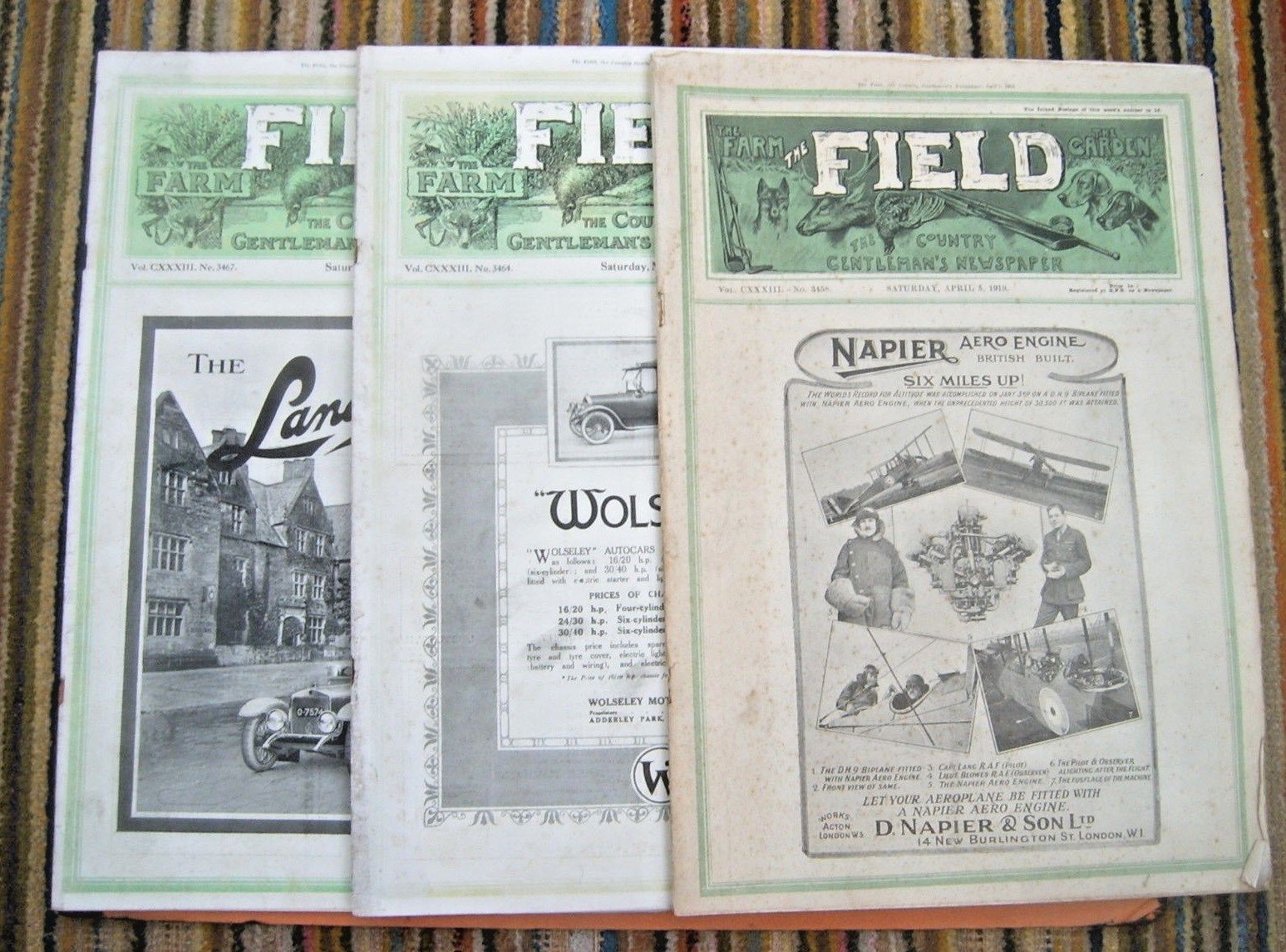 Title (ebay affiliate link): 3 Vintage 1919 The Field Magazines. No3458, 3464,3467. inc Aeronautics, Motoring