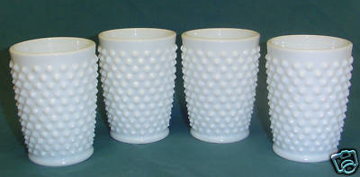 4 VINTAGE FENTON 3 1/2" MILK GLASS HOBNAIL GLASSES