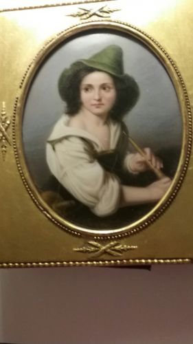 ANTIQUE HAND PAINTED PORTRAIT ON PORCELAIN 5 1/4" X 4"