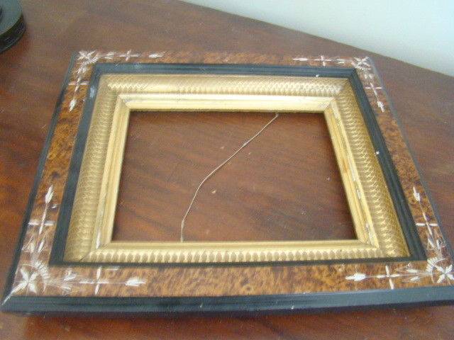 Antique Wooden Picture Frame carved 12" x 14" Black/Brown/White