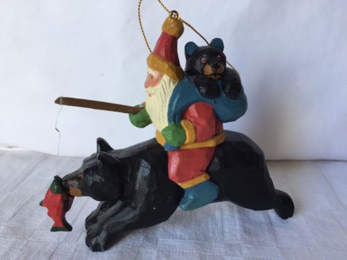 Susan M. Smith House Of Hatten Hand Carved Santa Fishing And Bear