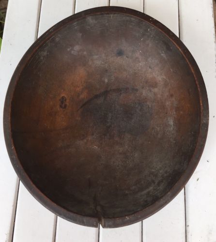 Title (ebay affiliate link): VTG DOUGH BOWL~WOOD~OUT OF ROUND 12" X 13" Primitive Shabby Chic Dark Wood